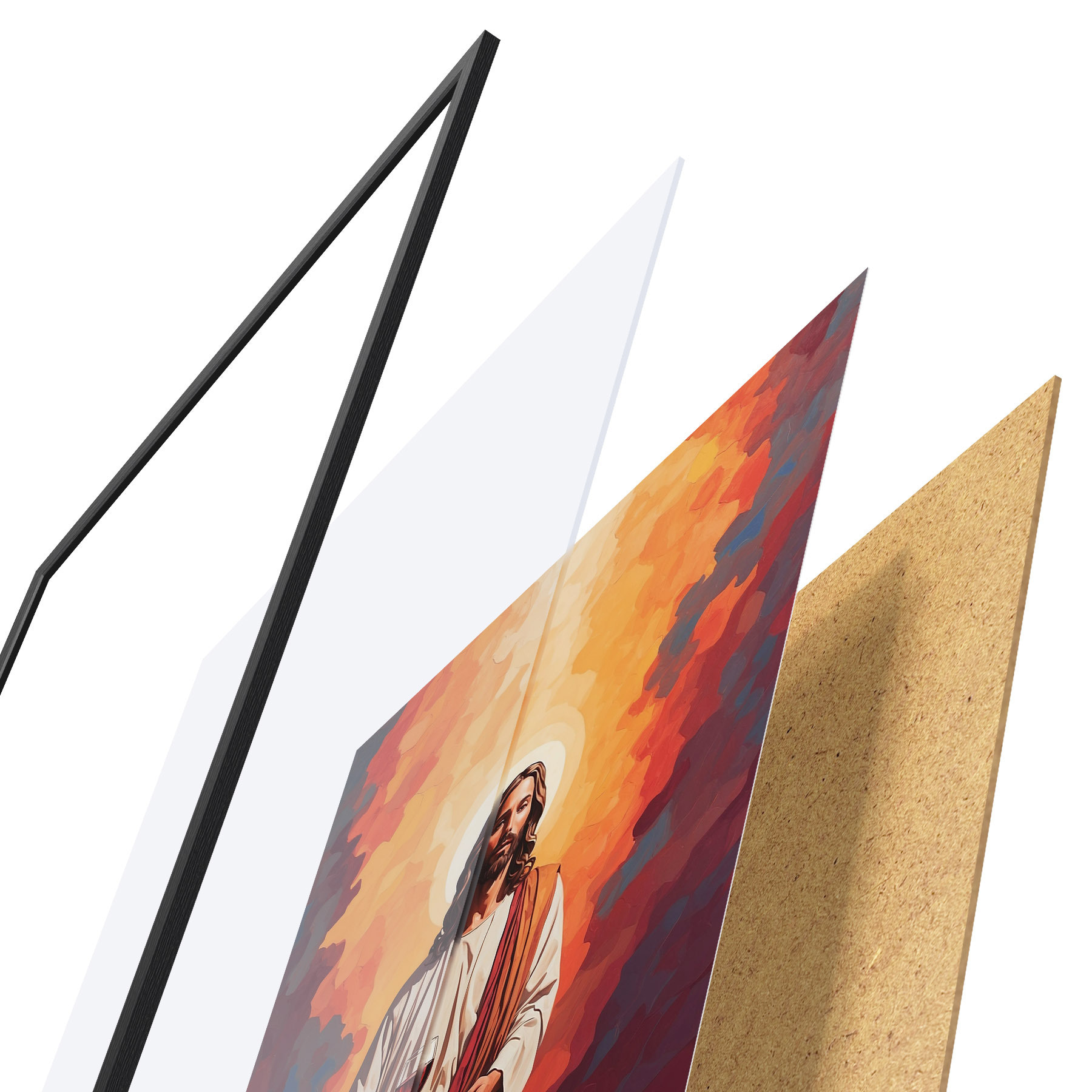 El póster consta de marco, plexiglás, imagen impresa y soporte de aglomerado. El póster puede colgarse inmediatamente en la pared gracias a los soportes de la parte posterior.