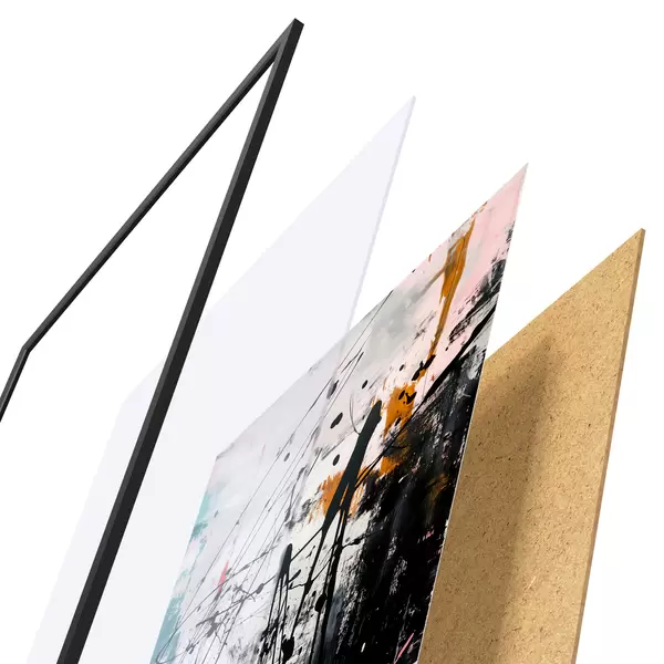 El póster consta de marco, plexiglás, imagen impresa y soporte de aglomerado. El póster puede colgarse inmediatamente en la pared gracias a los soportes de la parte posterior.