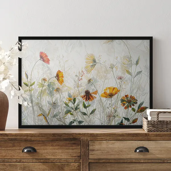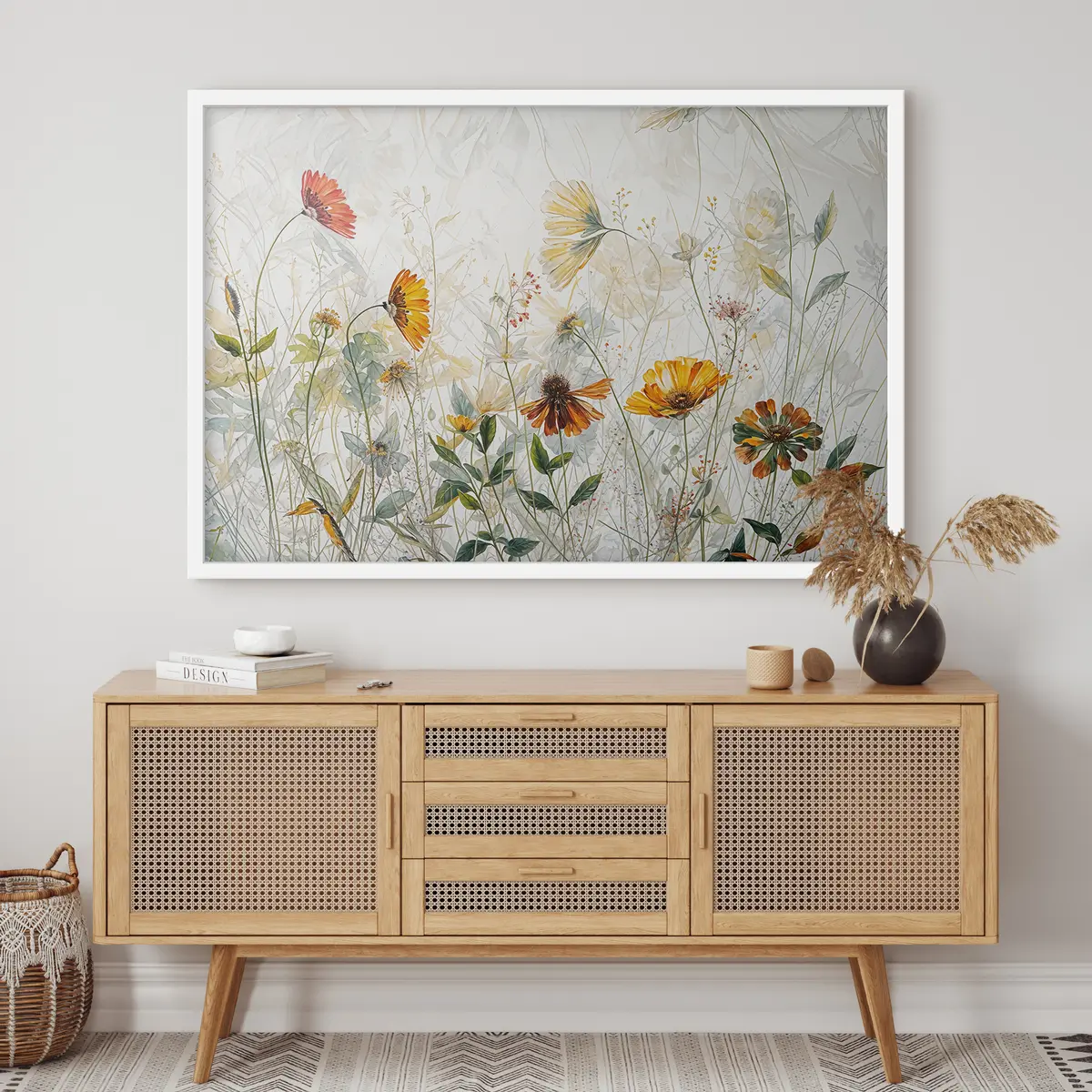 Poster Campo de delicadas flores sobre fondo blanco pintura al óleo Nr f38197