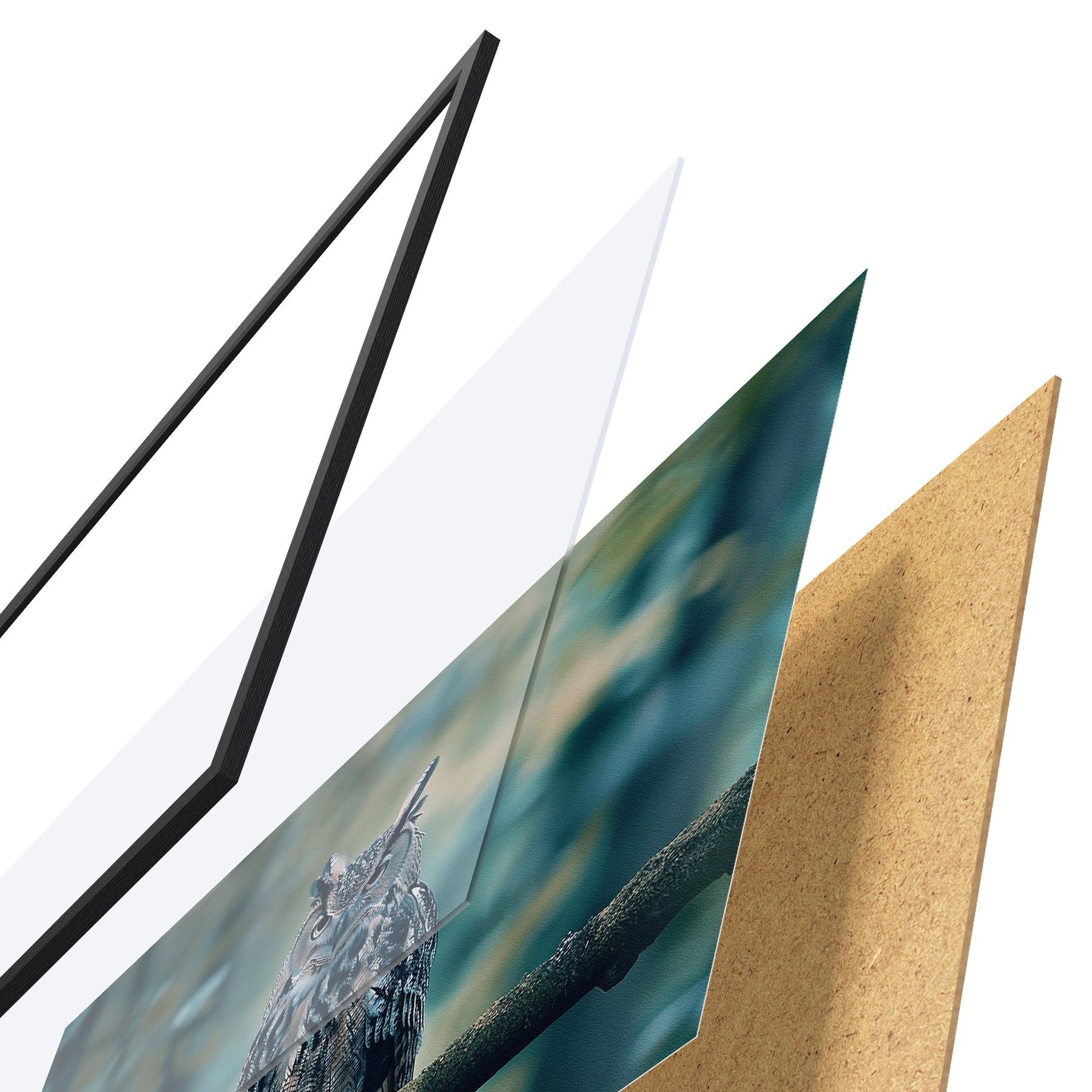 El póster consta de marco, plexiglás, imagen impresa y soporte de aglomerado. El póster puede colgarse inmediatamente en la pared gracias a los soportes de la parte posterior.
