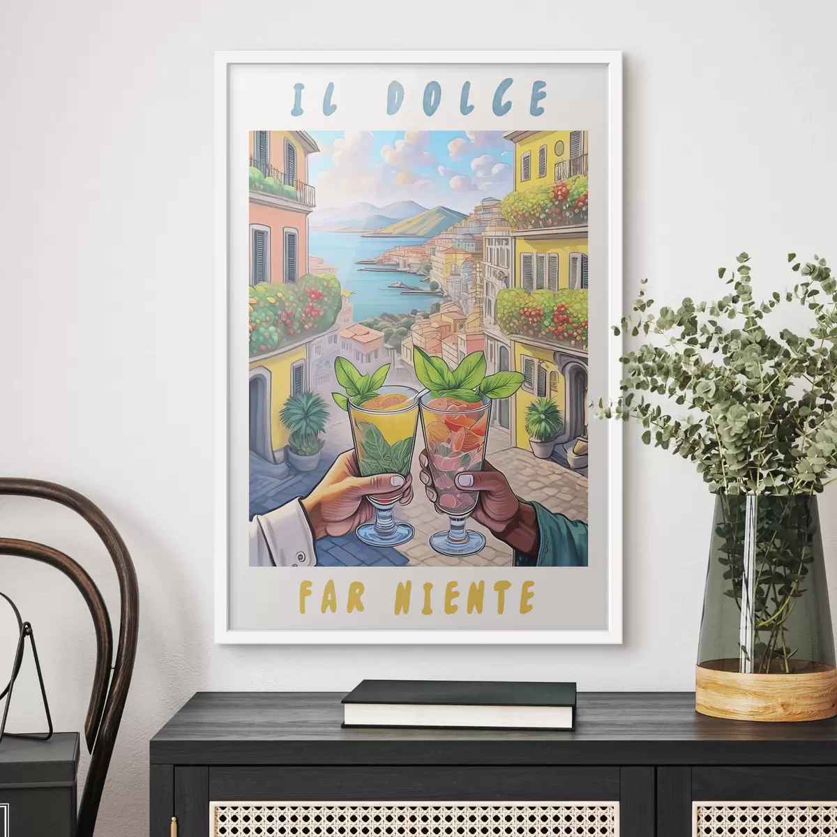 Poster Ciudad italiana, costa del mar, cócteles, vocación, arquitectura, verano, acuarela. f38392