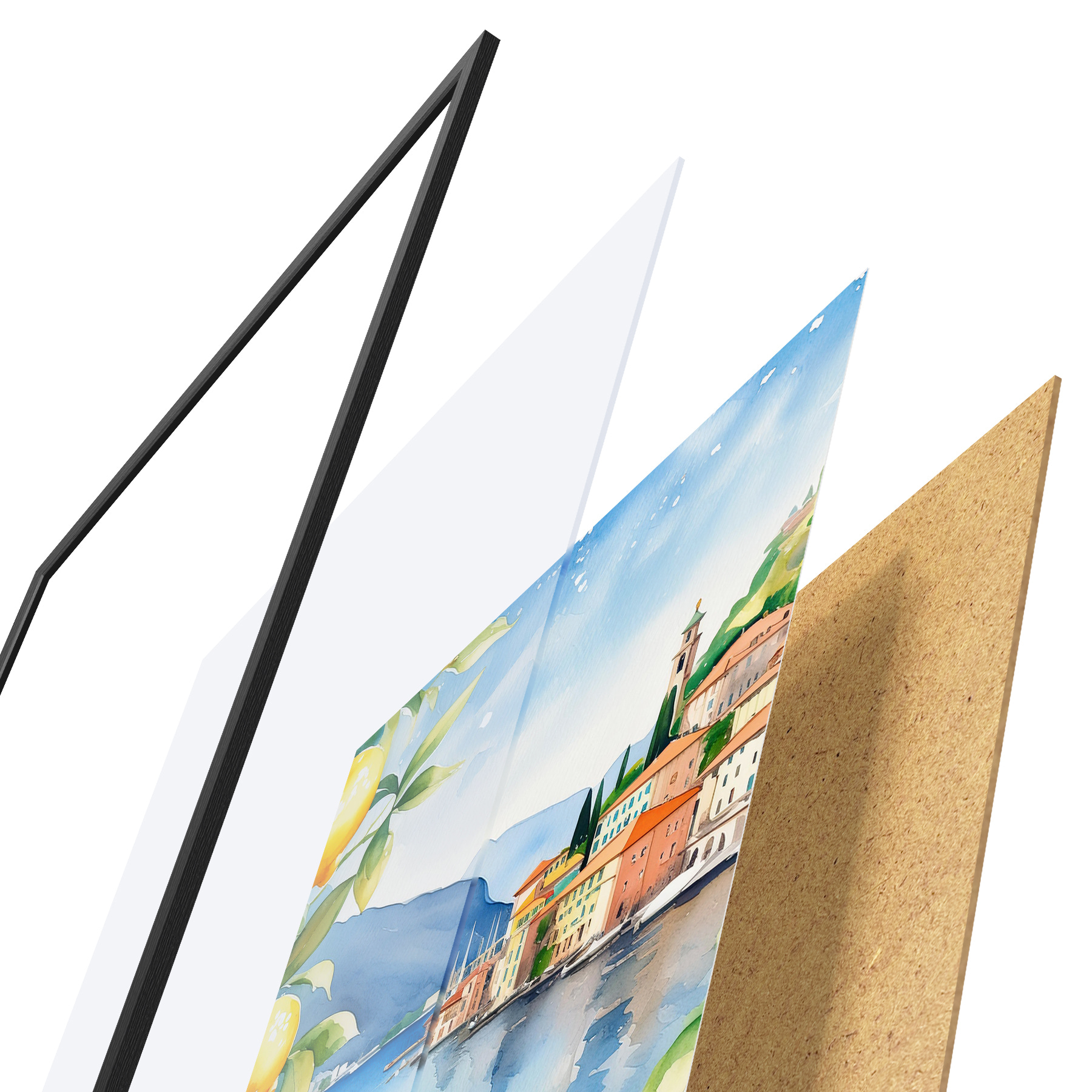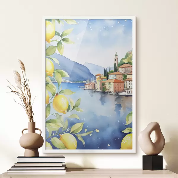 Poster Lago italiano, verano, acuarela, paisaje natural, limones, arquitectura de la ciudad Nr f38397