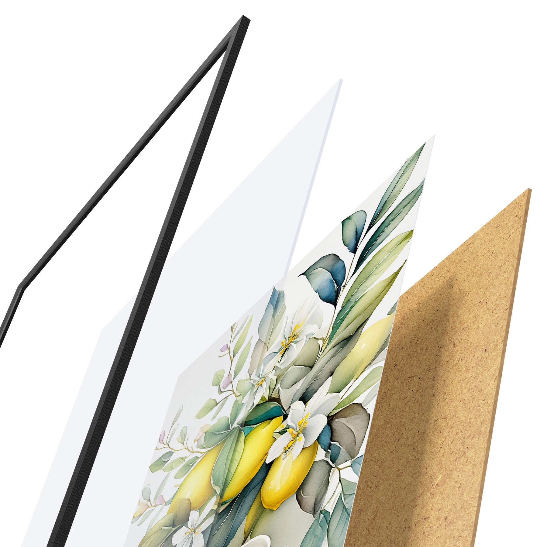 Poster Limones y flores, acuarela, desayuno, taza de té, estilo bohemio. Nr f38403