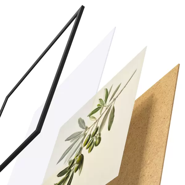 El póster consta de marco, plexiglás, imagen impresa y soporte de aglomerado. El póster puede colgarse inmediatamente en la pared gracias a los soportes de la parte posterior.