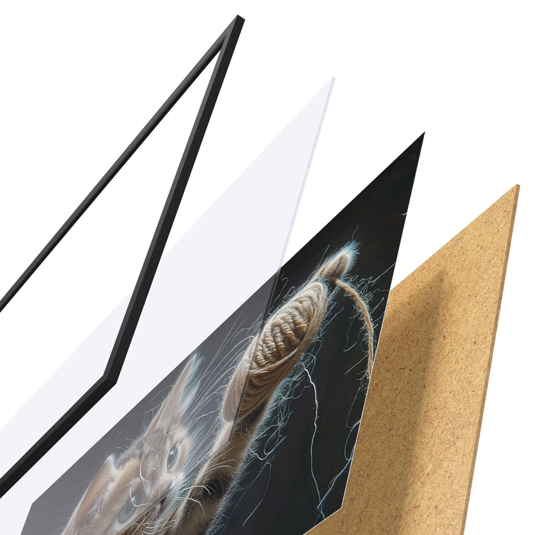 El póster consta de marco, plexiglás, imagen impresa y soporte de aglomerado. El póster puede colgarse inmediatamente en la pared gracias a los soportes de la parte posterior.