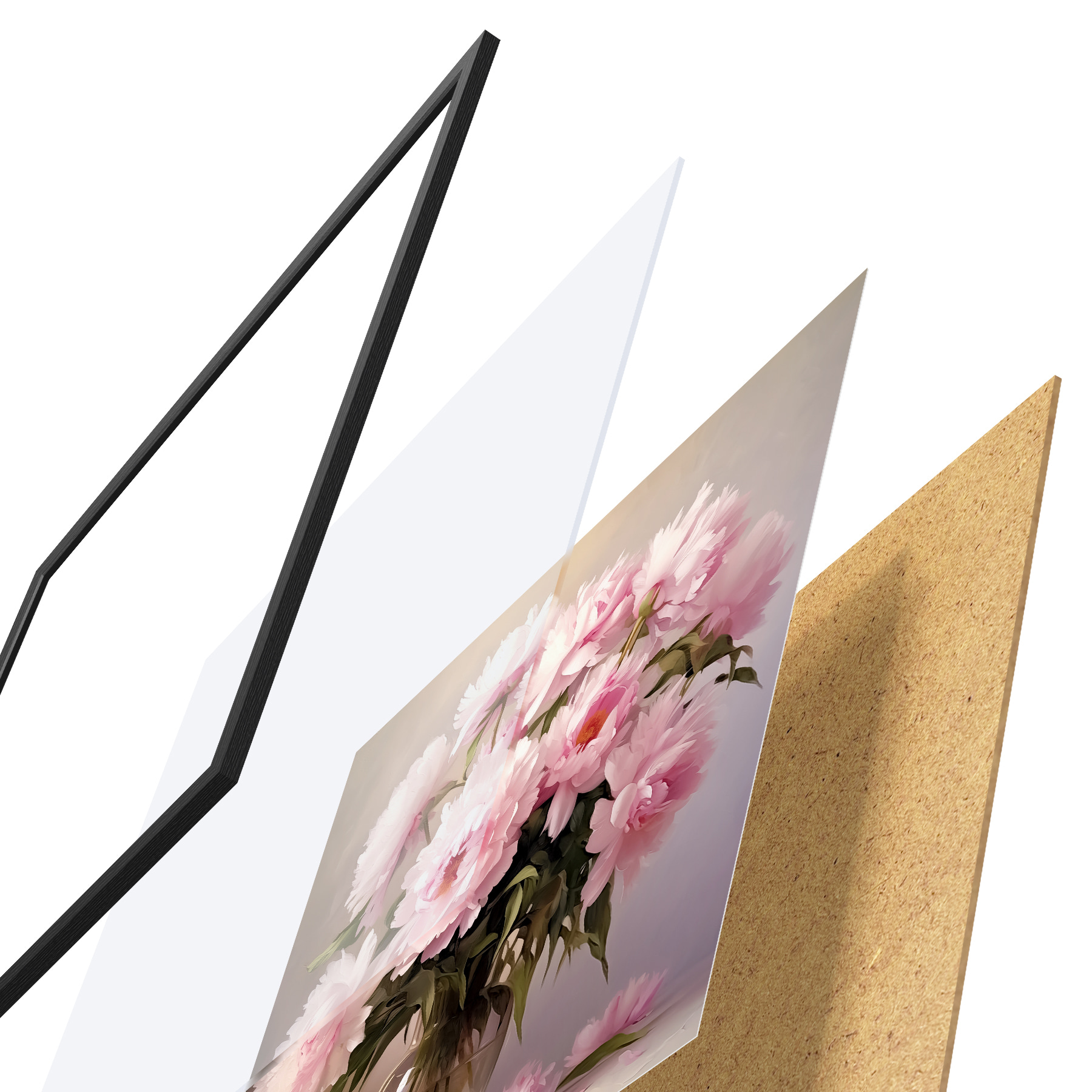 El póster consta de marco, plexiglás, imagen impresa y soporte de aglomerado. El póster puede colgarse inmediatamente en la pared gracias a los soportes de la parte posterior.