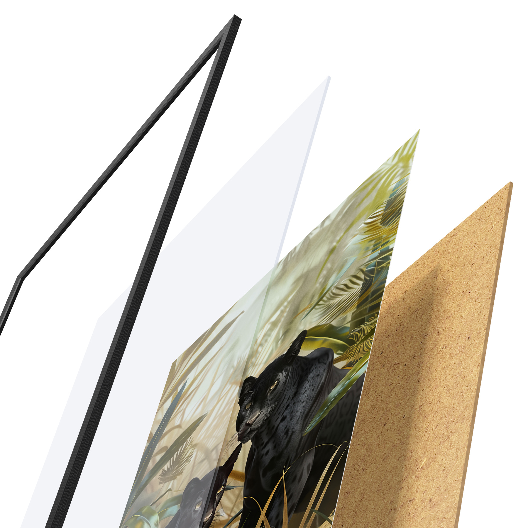 El póster consta de marco, plexiglás, imagen impresa y soporte de aglomerado. El póster puede colgarse inmediatamente en la pared gracias a los soportes de la parte posterior.