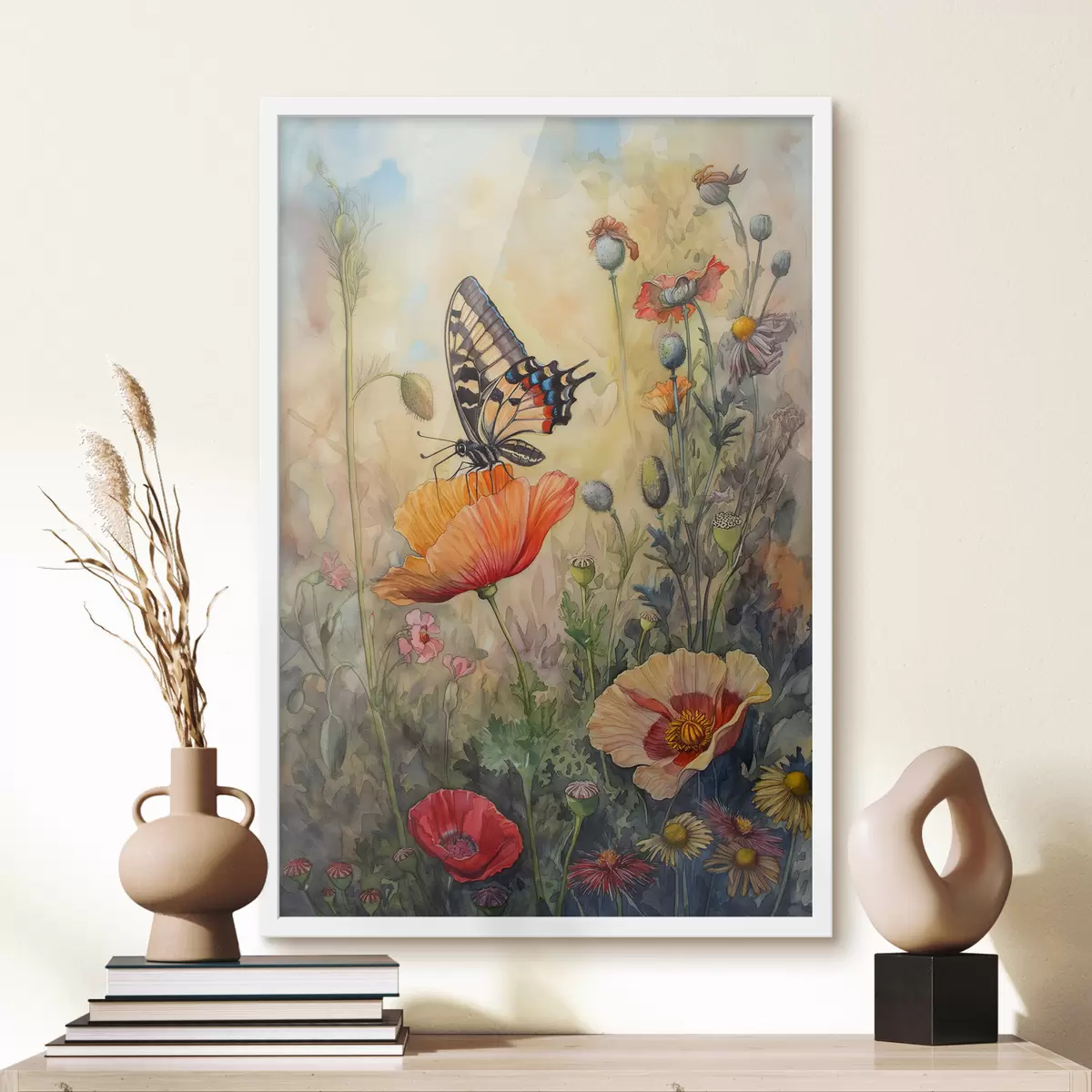 El póster consta de marco, plexiglás, imagen impresa y soporte de aglomerado. El póster puede colgarse inmediatamente en la pared gracias a los soportes de la parte posterior.