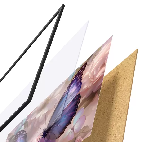 El póster consta de marco, plexiglás, imagen impresa y soporte de aglomerado. El póster puede colgarse inmediatamente en la pared gracias a los soportes de la parte posterior.