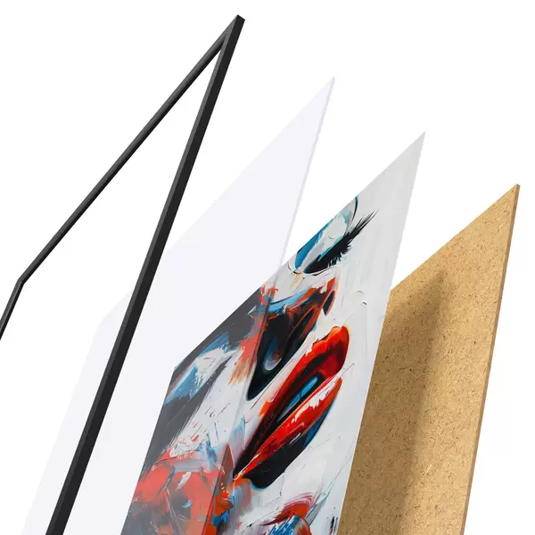 El póster consta de marco, plexiglás, imagen impresa y soporte de aglomerado. El póster puede colgarse inmediatamente en la pared gracias a los soportes de la parte posterior.