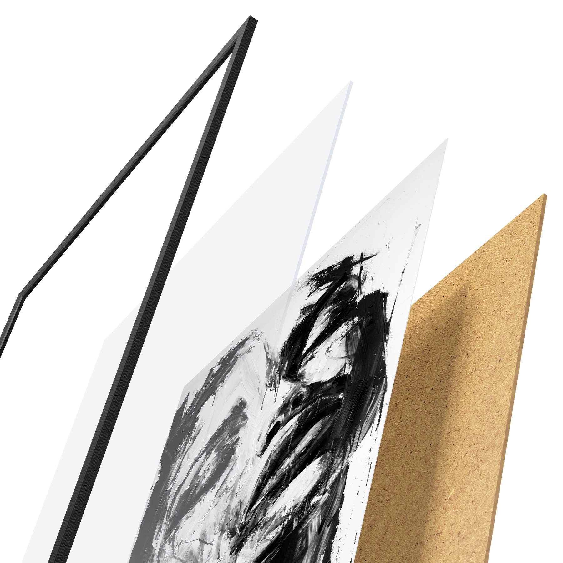 El póster consta de marco, plexiglás, imagen impresa y soporte de aglomerado. El póster puede colgarse inmediatamente en la pared gracias a los soportes de la parte posterior.