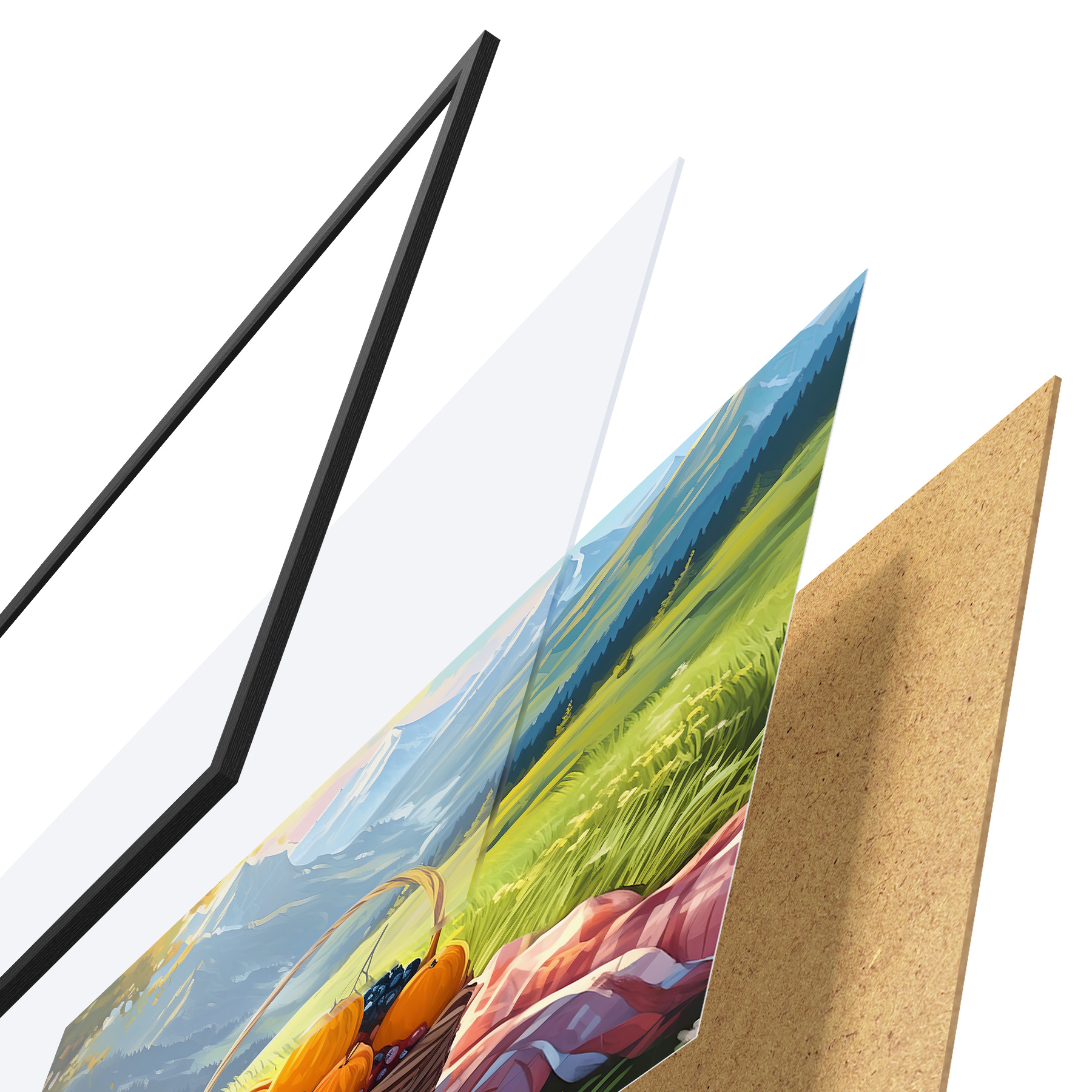El póster consta de marco, plexiglás, imagen impresa y soporte de aglomerado. El póster puede colgarse inmediatamente en la pared gracias a los soportes de la parte posterior.