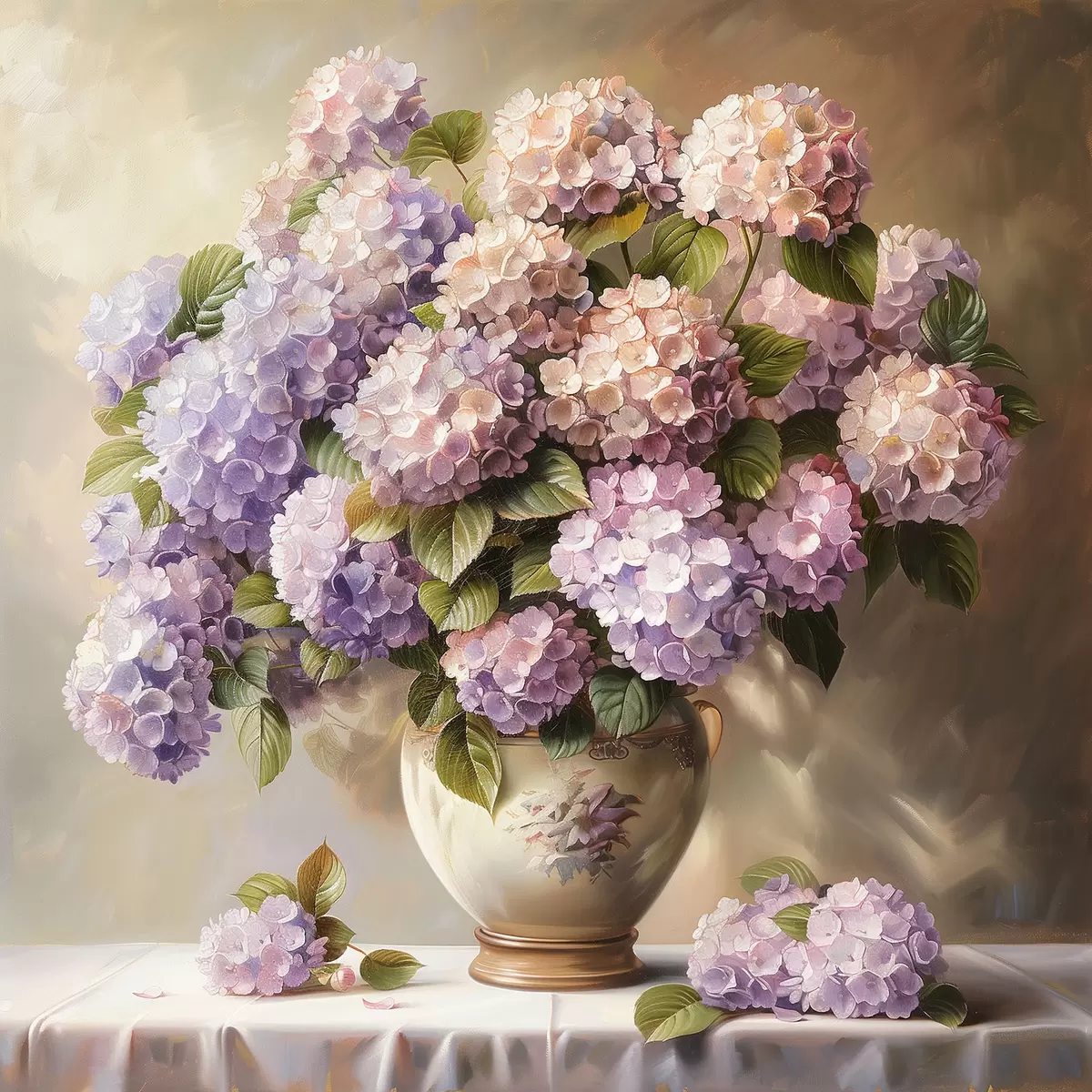Poster Delicadas hortensias sobre la mesa. Nr f38710