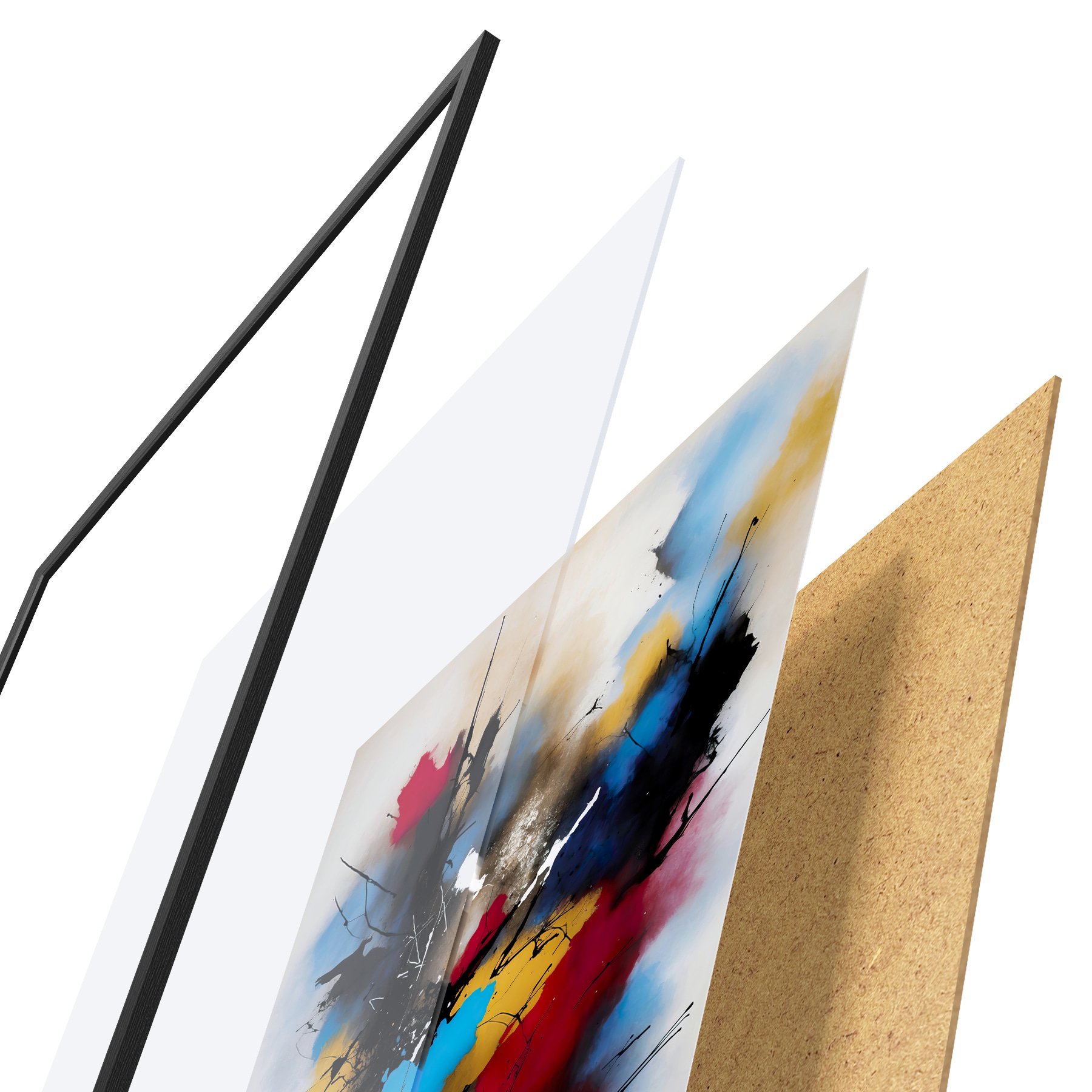 El póster consta de marco, plexiglás, imagen impresa y soporte de aglomerado. El póster puede colgarse inmediatamente en la pared gracias a los soportes de la parte posterior.