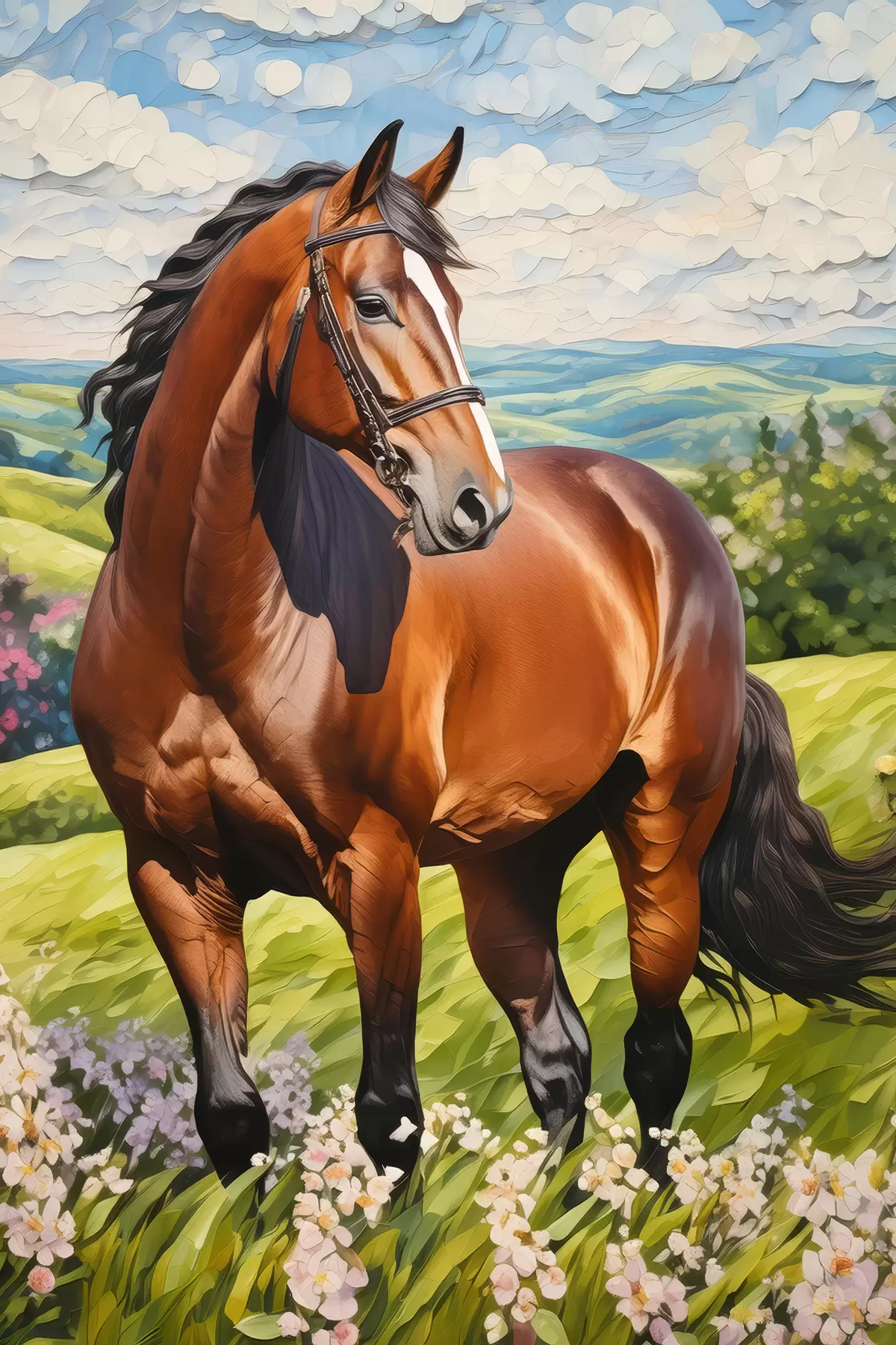 Poster Hermoso caballo en el césped, cielo azul Nr f38727