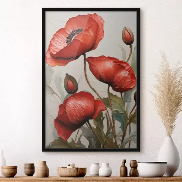Poster Hermosas amapolas rojas con pinturas al óleo Nr f38734