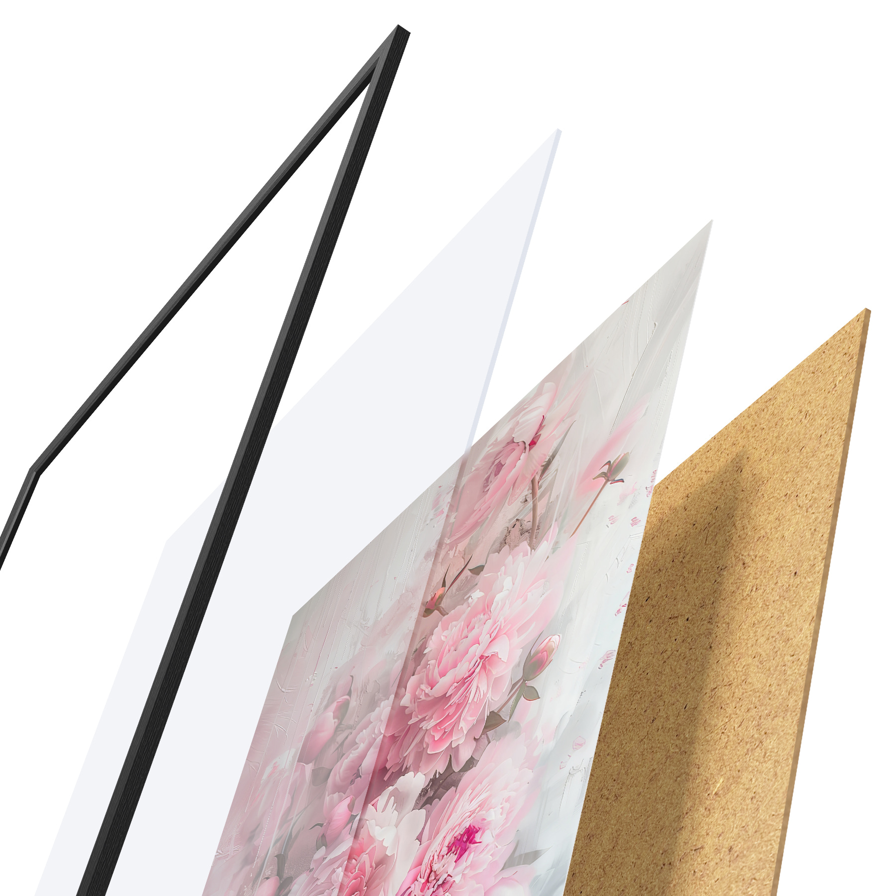 El póster consta de marco, plexiglás, imagen impresa y soporte de aglomerado. El póster puede colgarse inmediatamente en la pared gracias a los soportes de la parte posterior.