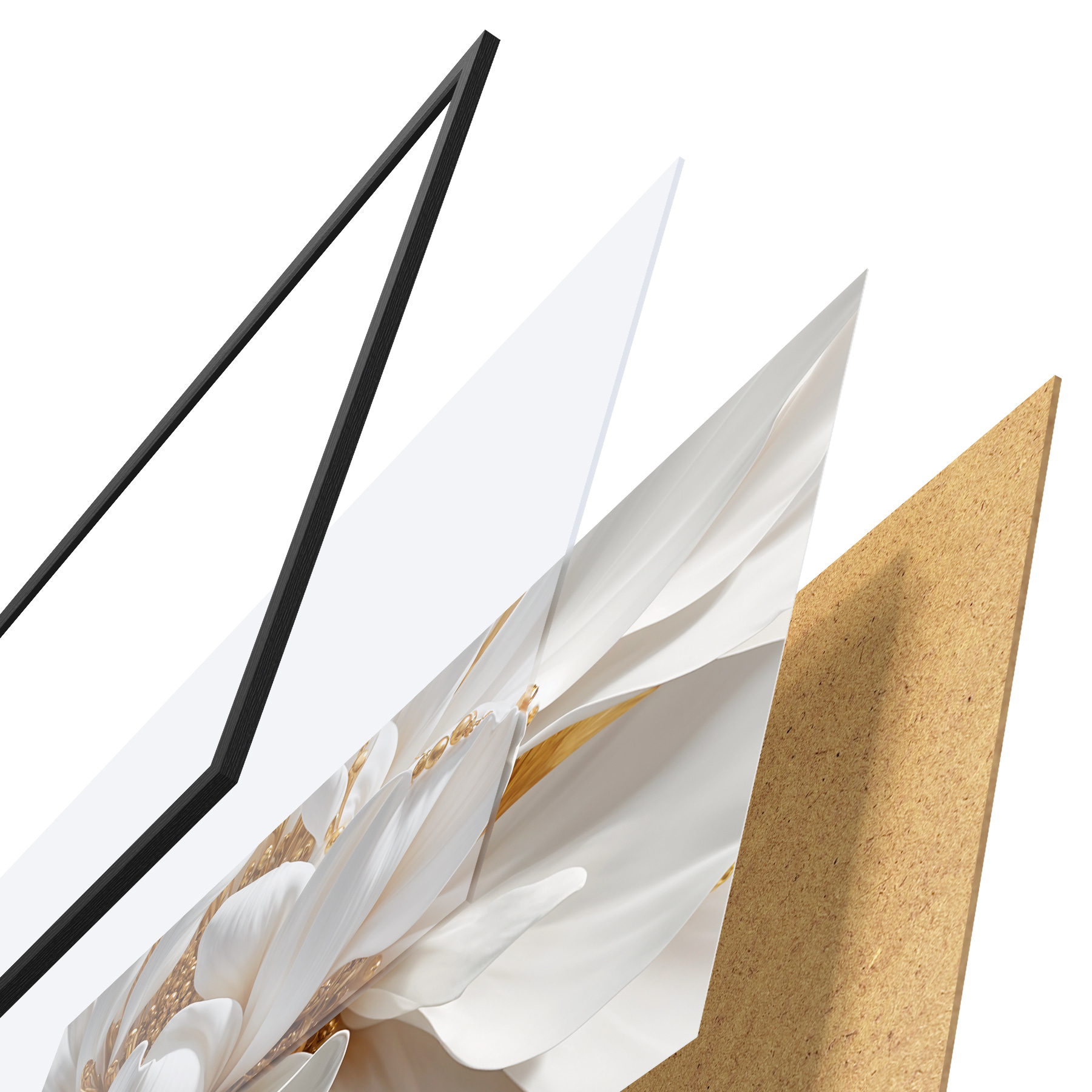 El póster consta de marco, plexiglás, imagen impresa y soporte de aglomerado. El póster puede colgarse inmediatamente en la pared gracias a los soportes de la parte posterior.