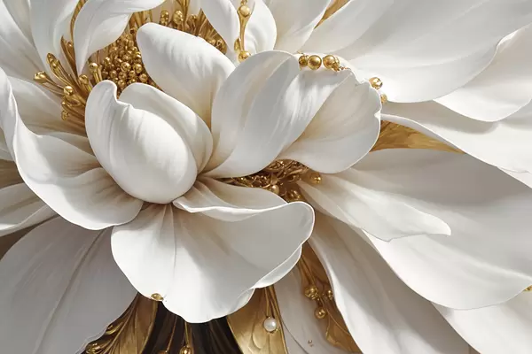 Poster Un primer plano de una gran flor blanca con delicados pétalos y estambres en el centro del minimalismo. f38762