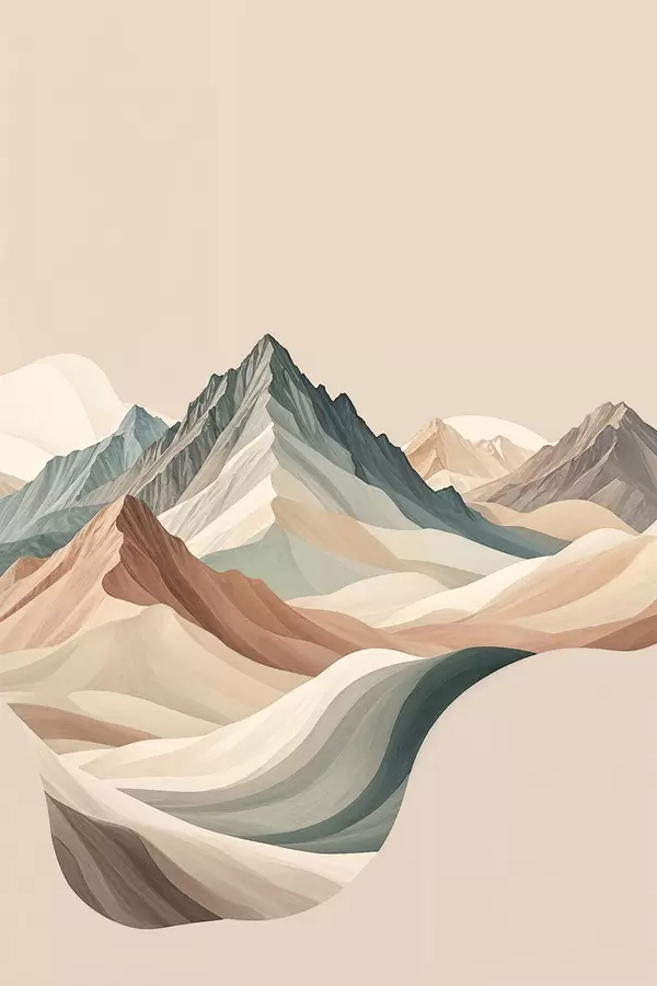 Poster Paisaje montañoso minimalista con picos rocosos y colinas en color beige f38770