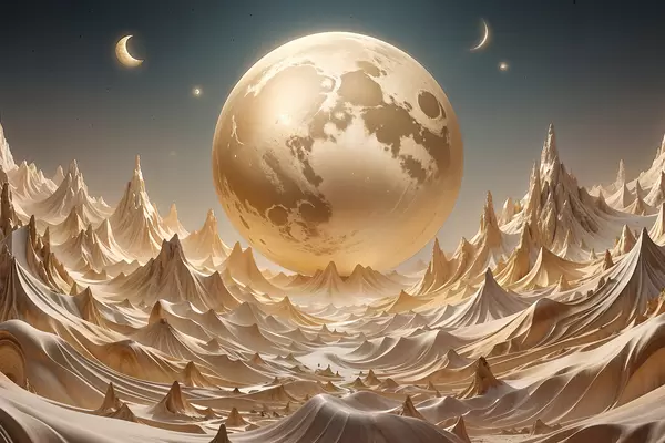 Poster Luna llena resplandeciente sobre un paisaje montañoso surrealista con picos Nr f38775