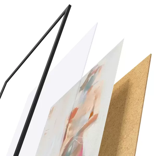 El póster consta de marco, plexiglás, imagen impresa y soporte de aglomerado. El póster puede colgarse inmediatamente en la pared gracias a los soportes de la parte posterior.