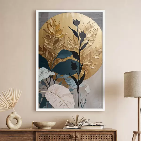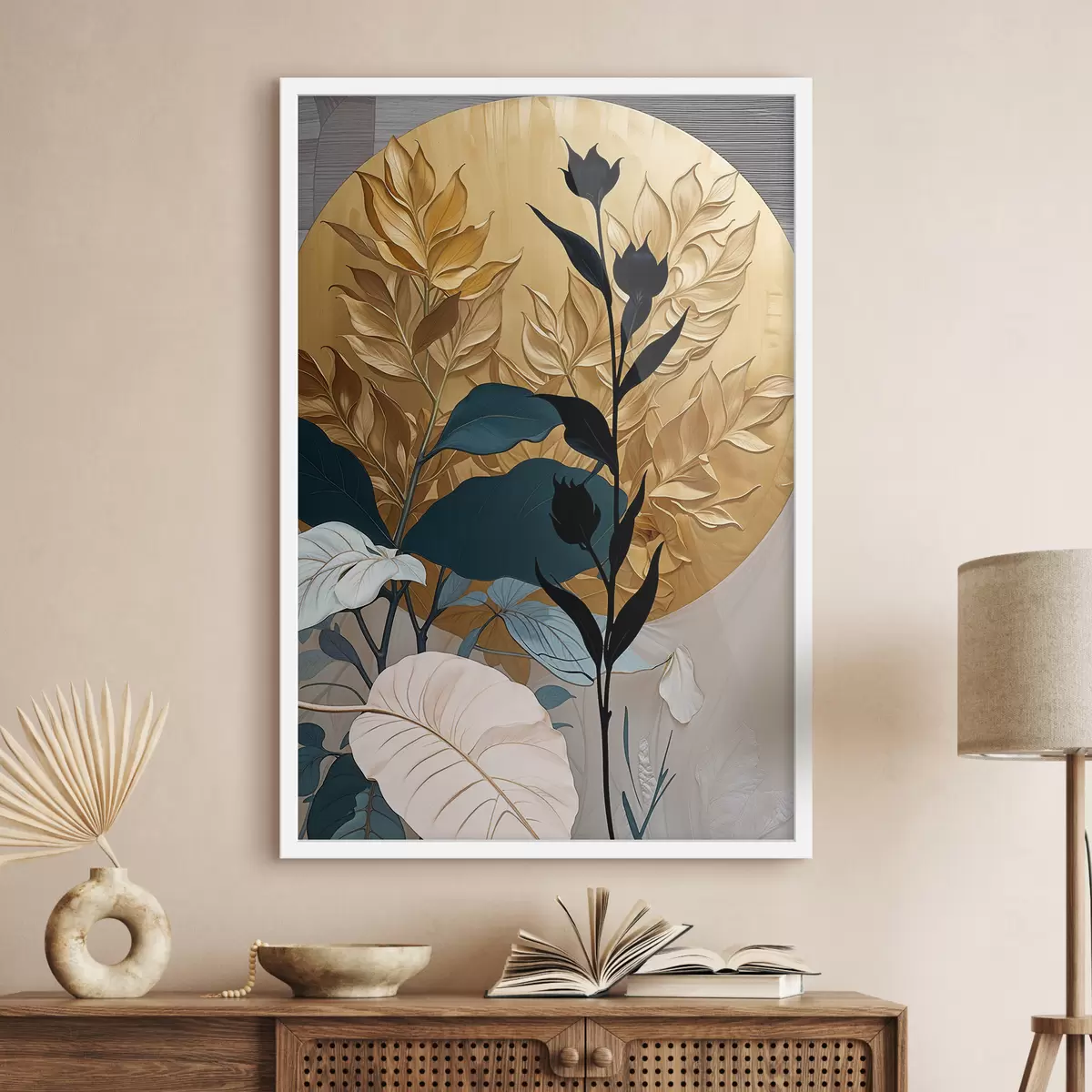 Poster Composición floral abstracta con grandes hojas y siluetas oscuras. Nr f38822