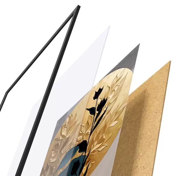El póster consta de marco, plexiglás, imagen impresa y soporte de aglomerado. El póster puede colgarse inmediatamente en la pared gracias a los soportes de la parte posterior.