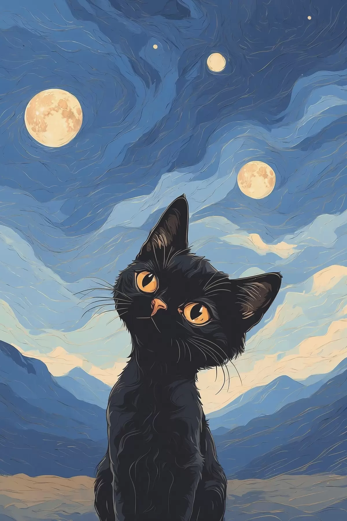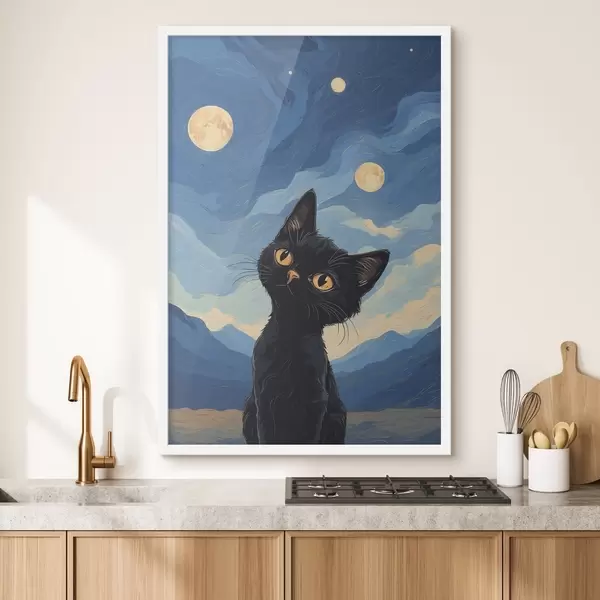 Poster Gato curioso bajo un cielo estrellado Nr f38860