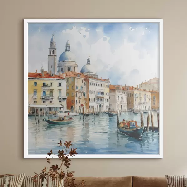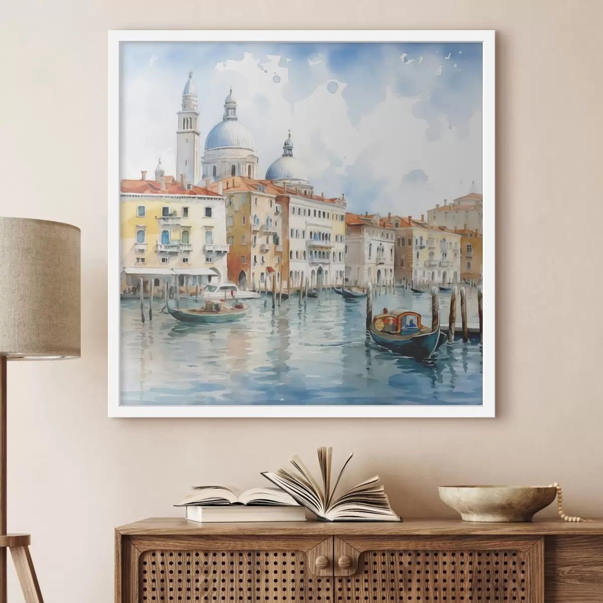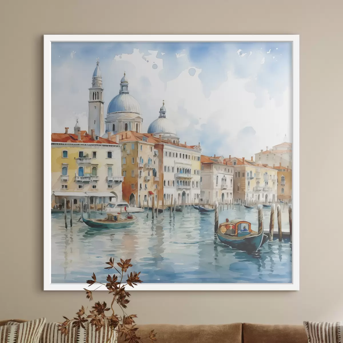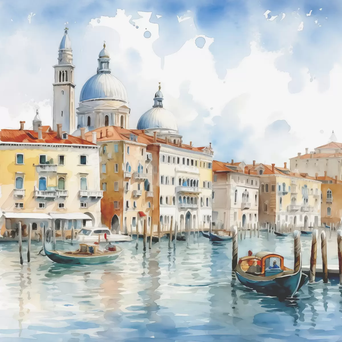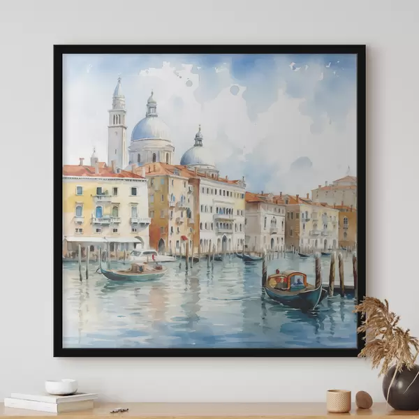 Poster Acuarela Paisaje de Venecia, bahía, río, arquitectura, paisaje, barcos, góndola Nr f38908