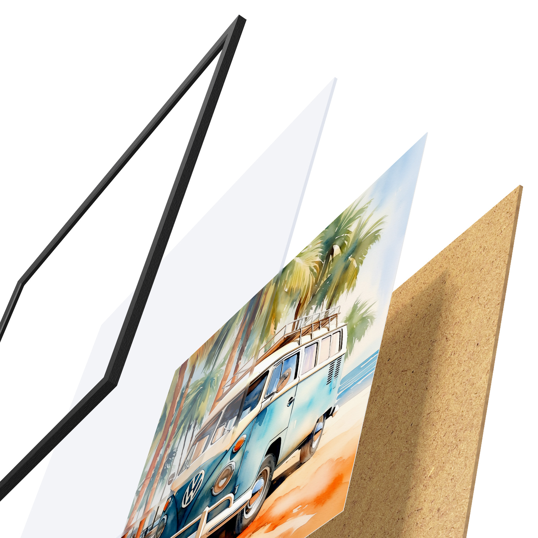 El póster consta de marco, plexiglás, imagen impresa y soporte de aglomerado. El póster puede colgarse inmediatamente en la pared gracias a los soportes de la parte posterior.