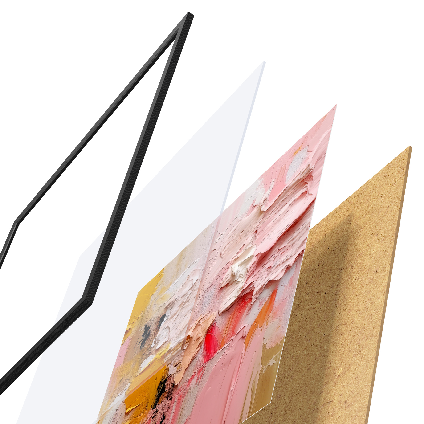 El póster consta de marco, plexiglás, imagen impresa y soporte de aglomerado. El póster puede colgarse inmediatamente en la pared gracias a los soportes de la parte posterior.