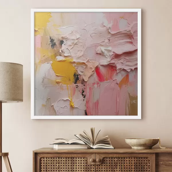 Poster Expresionismo abstracto de grandes pinceladas en rosa, amarillo y blanco. f38916
