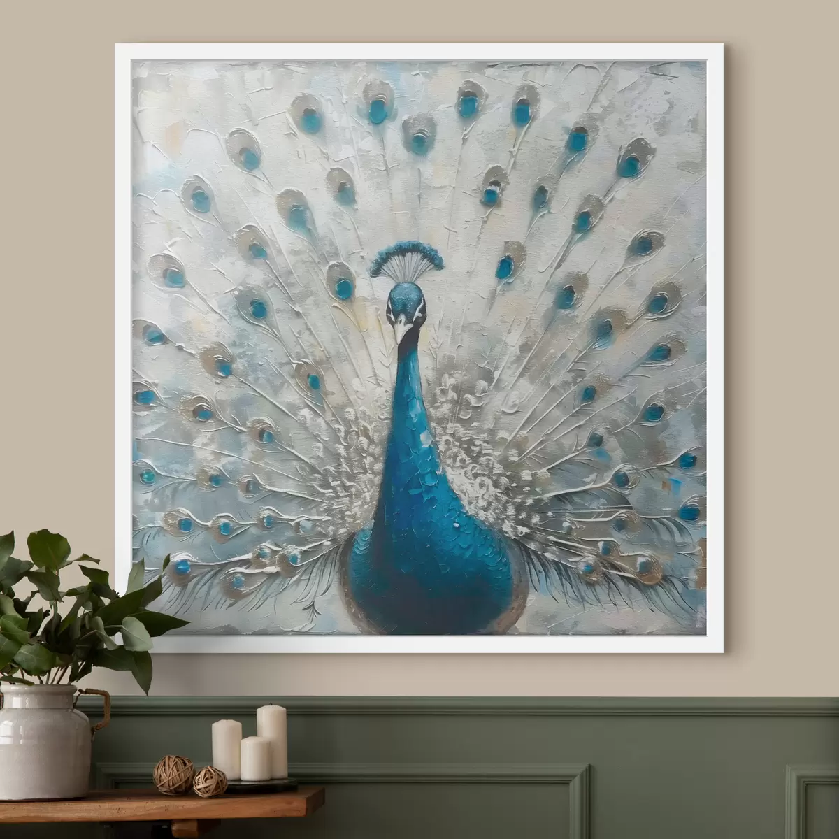 Poster Pájaro pavo real azul con textura impresa de plumas. Nr f38931