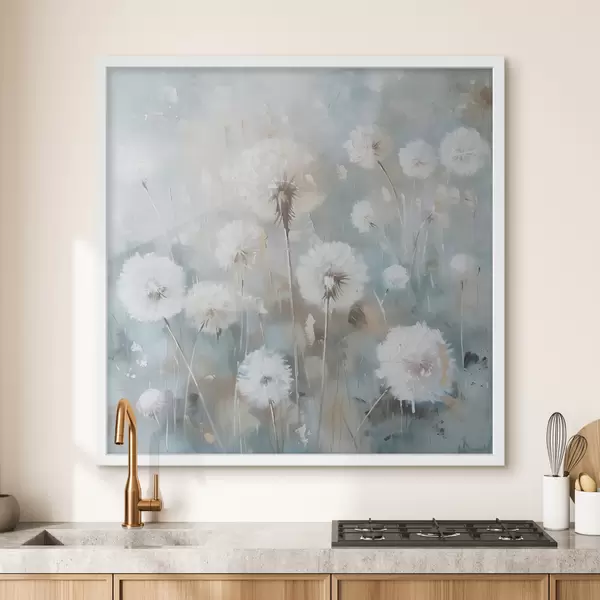 Poster Campo de plantas de diente de león y flores textura impresa. f38932