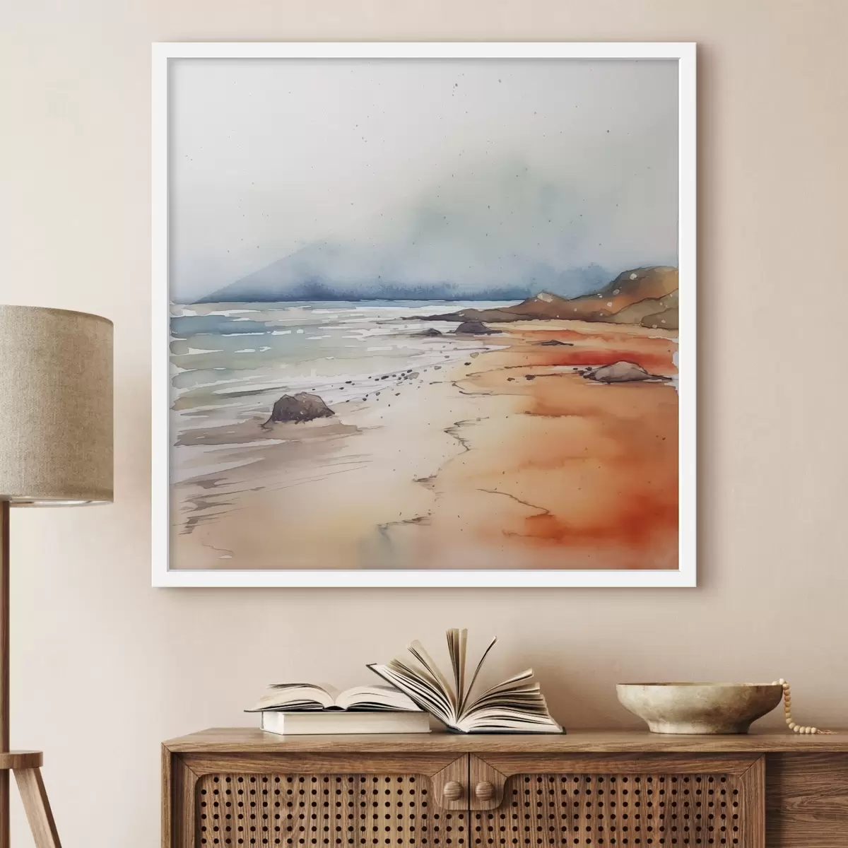 Poster Mar y playa, lluvia, acuarela, manchas, paisaje, paisaje, azul, color naranja Nr f38936