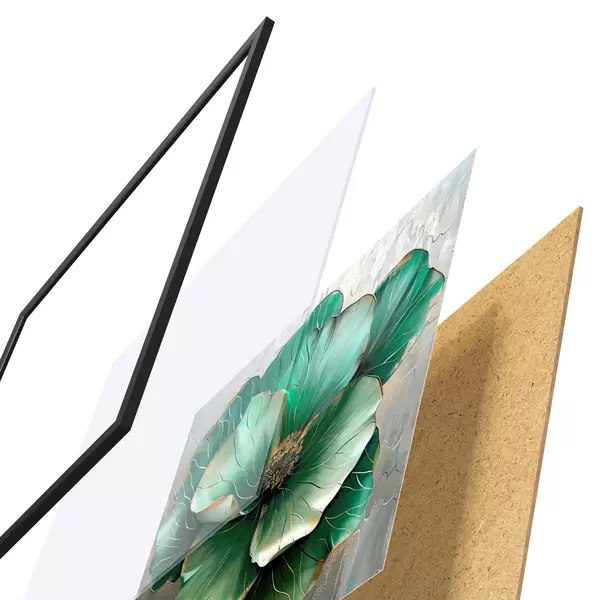 El póster consta de marco, plexiglás, imagen impresa y soporte de aglomerado. El póster puede colgarse inmediatamente en la pared gracias a los soportes de la parte posterior.