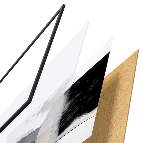 El póster consta de marco, plexiglás, imagen impresa y soporte de aglomerado. El póster puede colgarse inmediatamente en la pared gracias a los soportes de la parte posterior.
