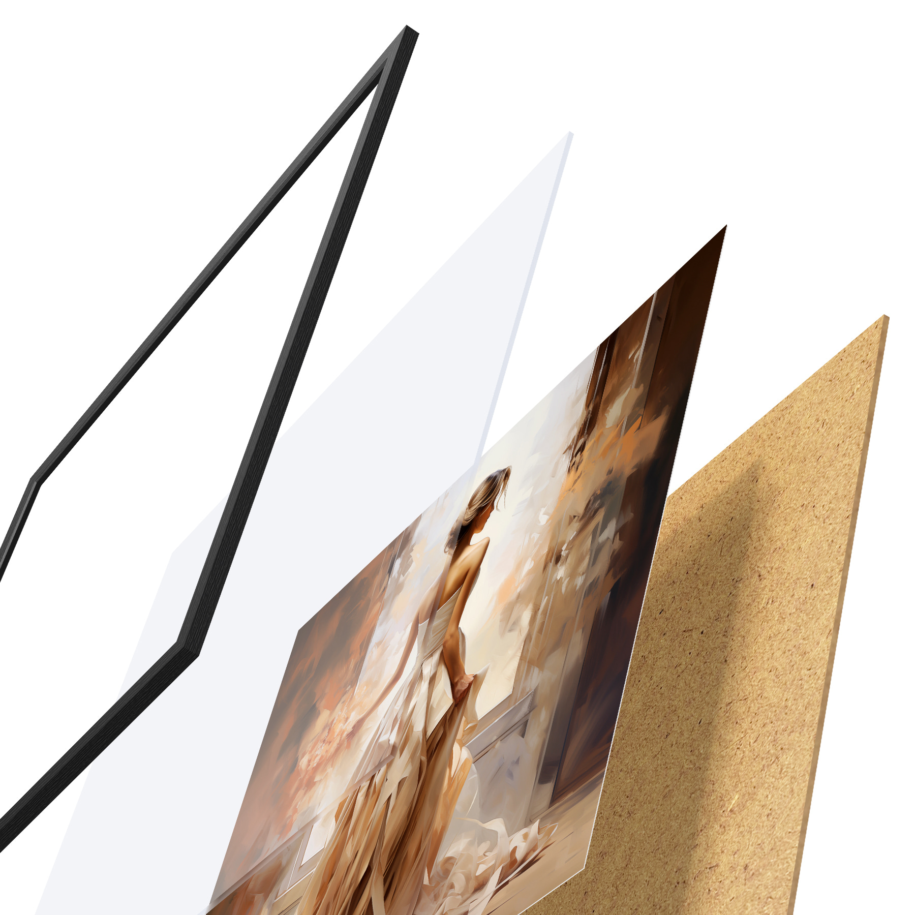 El póster consta de marco, plexiglás, imagen impresa y soporte de aglomerado. El póster puede colgarse inmediatamente en la pared gracias a los soportes de la parte posterior.