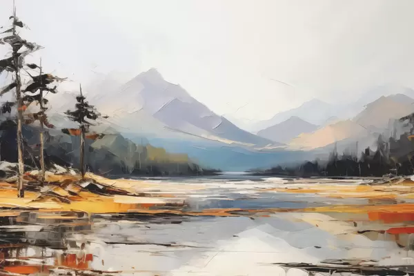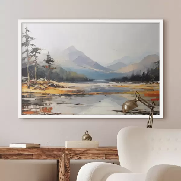 Poster Cordilleras en el valle pintura al óleo, paisaje, naturaleza, azul, color amarillo blanco Nr f39128