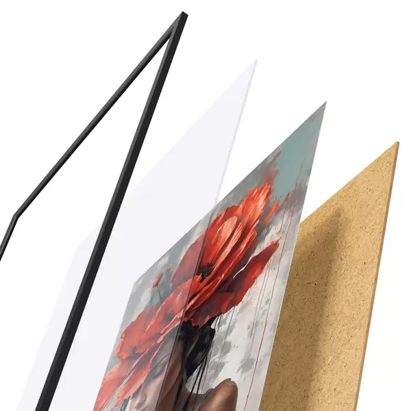 El póster consta de marco, plexiglás, imagen impresa y soporte de aglomerado. El póster puede colgarse inmediatamente en la pared gracias a los soportes de la parte posterior.