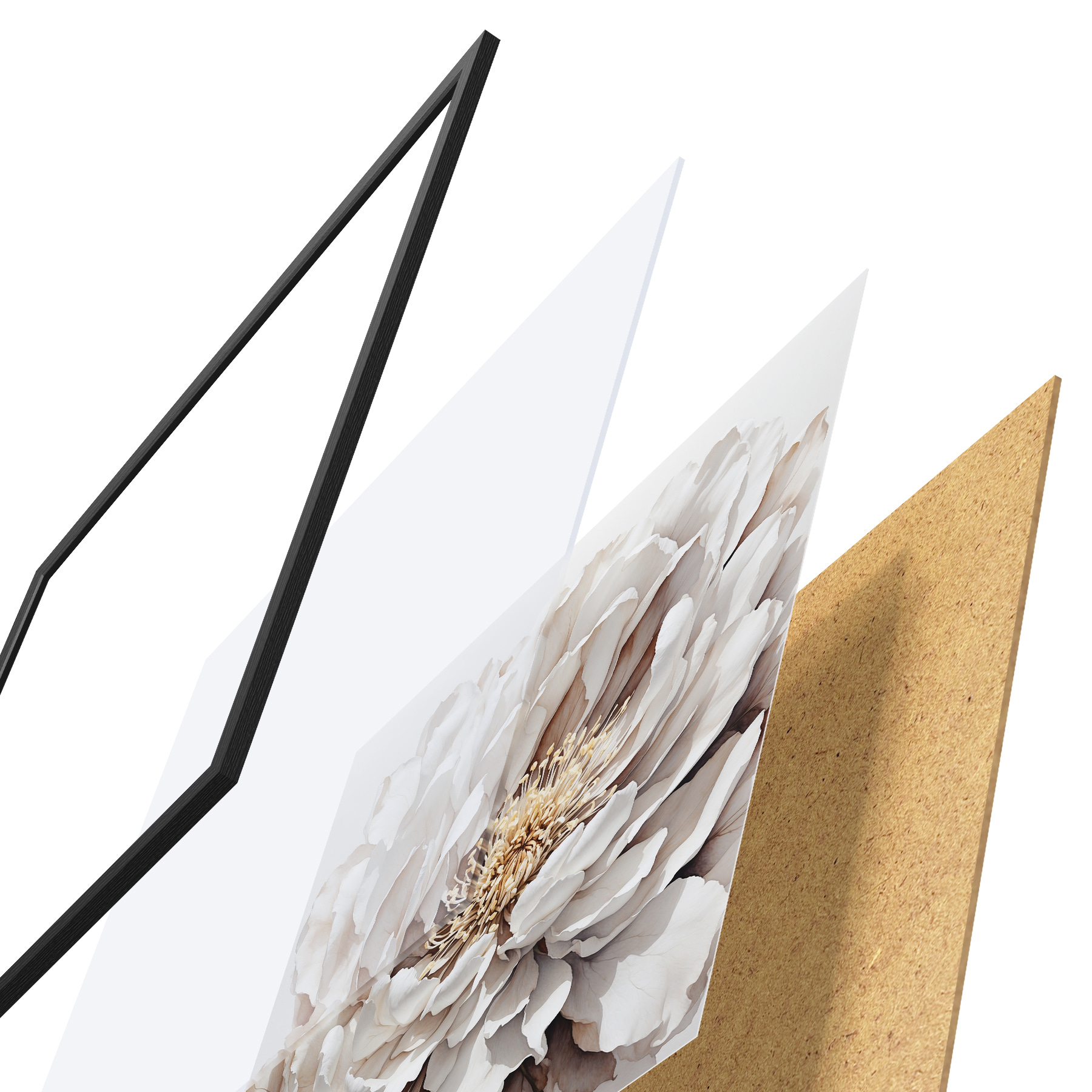 El póster consta de marco, plexiglás, imagen impresa y soporte de aglomerado. El póster puede colgarse inmediatamente en la pared gracias a los soportes de la parte posterior.
