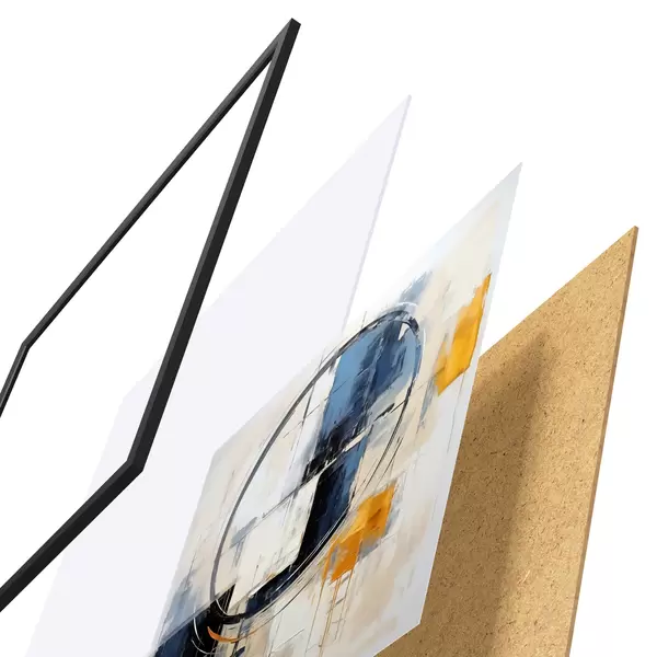 El póster consta de marco, plexiglás, imagen impresa y soporte de aglomerado. El póster puede colgarse inmediatamente en la pared gracias a los soportes de la parte posterior.