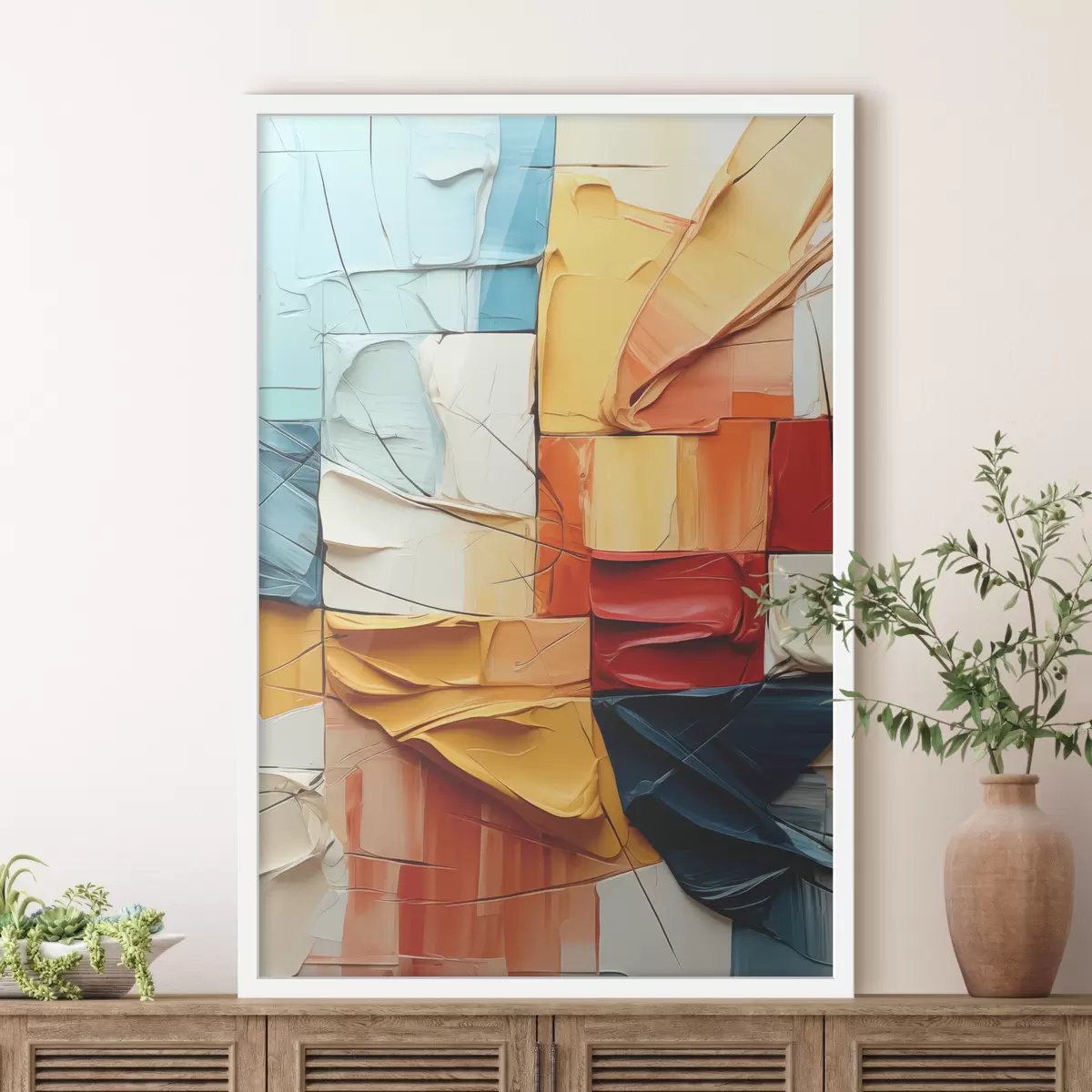 Poster Trozos de pintura brillante con grietas, cuadrados, pintura cubista. f39196