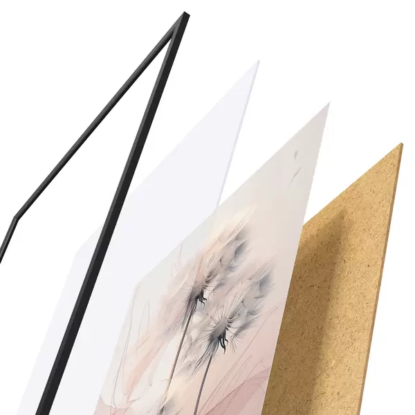 El póster consta de marco, plexiglás, imagen impresa y soporte de aglomerado. El póster puede colgarse inmediatamente en la pared gracias a los soportes de la parte posterior.