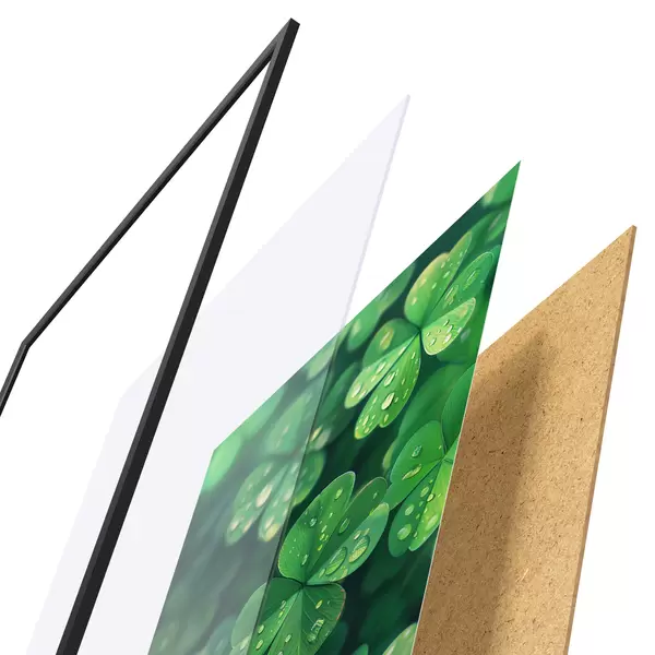 El póster consta de marco, plexiglás, imagen impresa y soporte de aglomerado. El póster puede colgarse inmediatamente en la pared gracias a los soportes de la parte posterior.