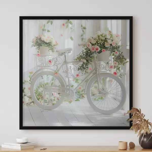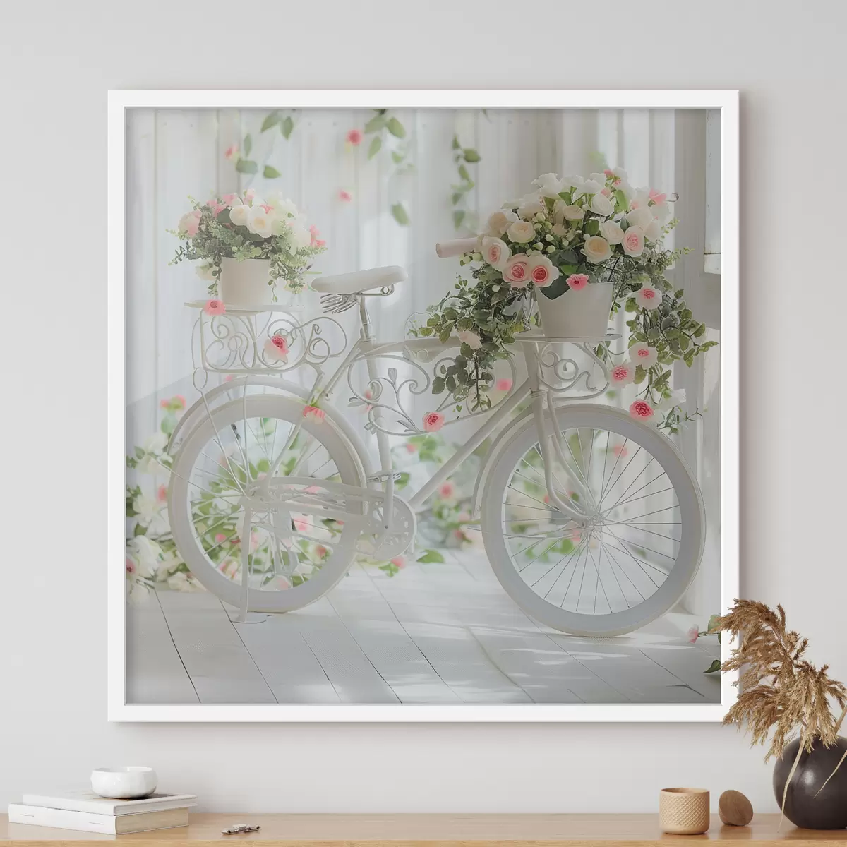 Poster Bicicleta blanca con cesta de flores de estilo provenzal Nr f39243