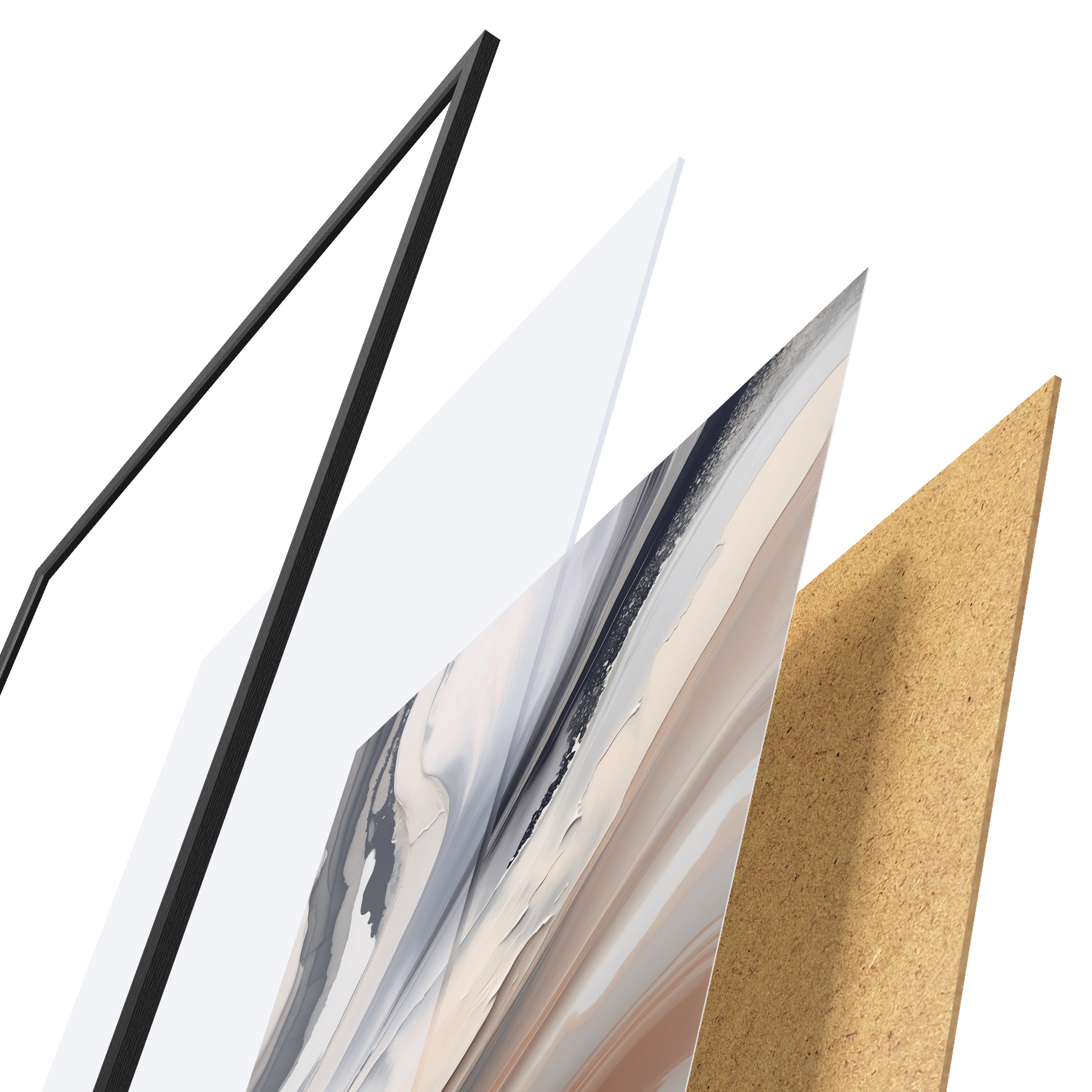 El póster consta de marco, plexiglás, imagen impresa y soporte de aglomerado. El póster puede colgarse inmediatamente en la pared gracias a los soportes de la parte posterior.