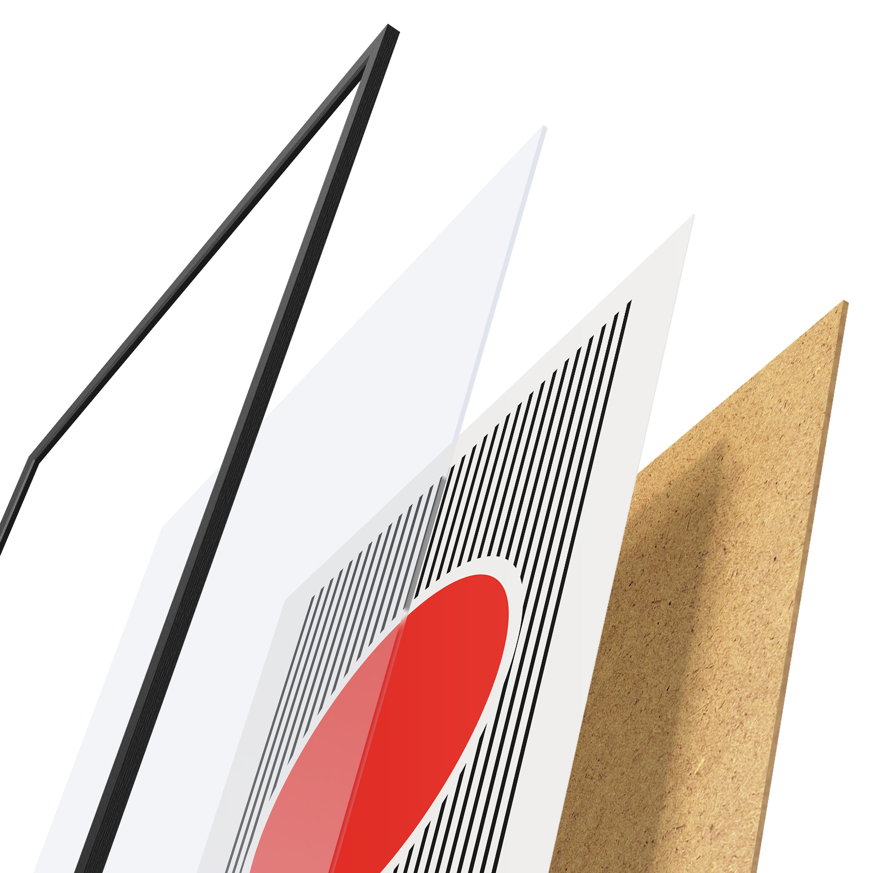 El póster consta de marco, plexiglás, imagen impresa y soporte de aglomerado. El póster puede colgarse inmediatamente en la pared gracias a los soportes de la parte posterior.