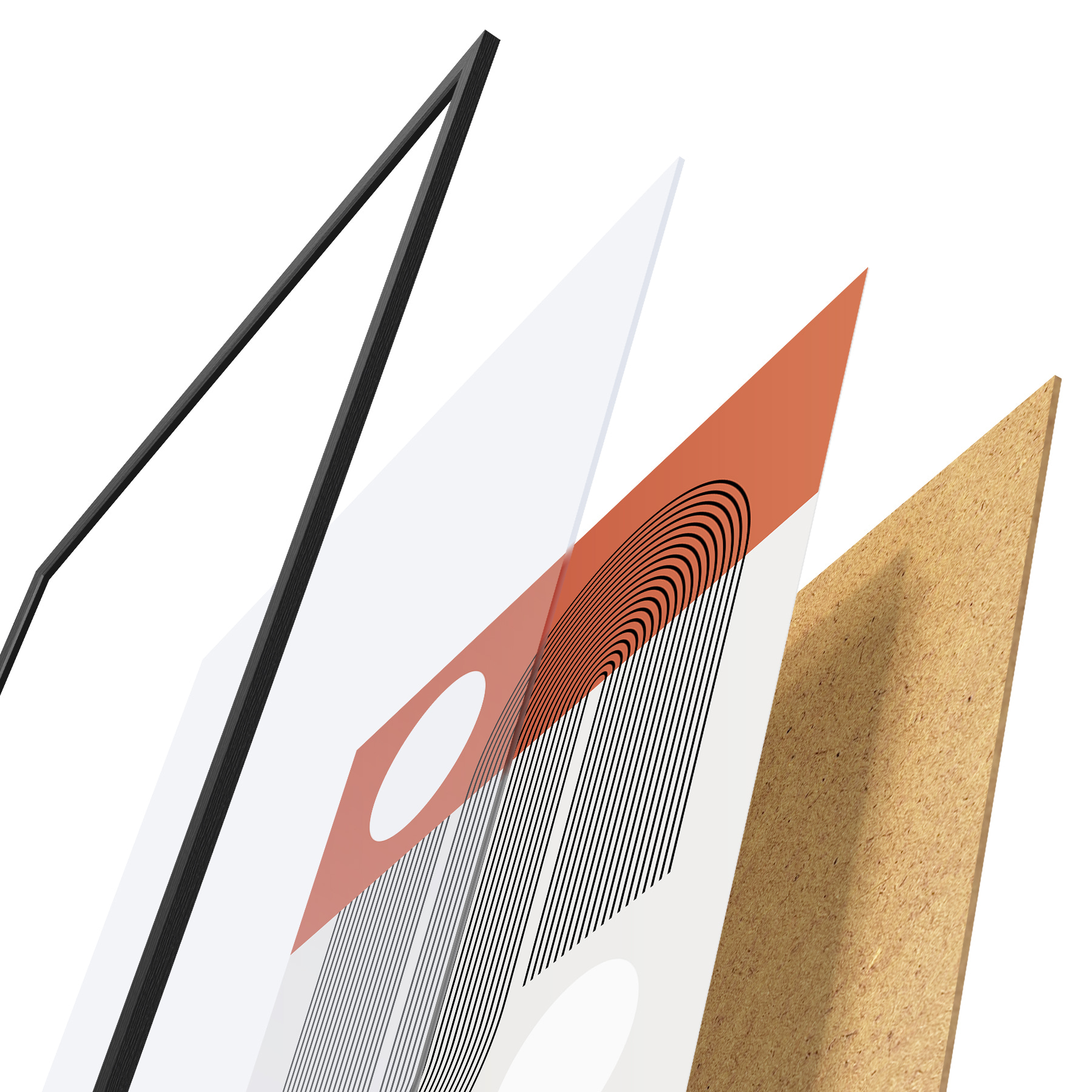 El póster consta de marco, plexiglás, imagen impresa y soporte de aglomerado. El póster puede colgarse inmediatamente en la pared gracias a los soportes de la parte posterior.